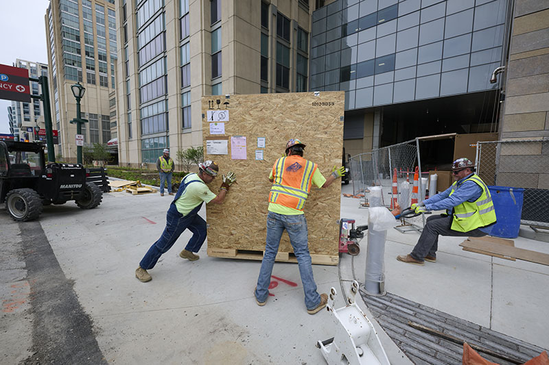 Installing them was not an easy feat – they can’t just be loaded onto an elevator. Weighing nearly 16,000 pounds, a mobile crane operator lifted each MRI and carefully slid them into 7-foot by 8-foot openings in each MRI room. The floors in each room are reinforced to bear the weight, and each is specially designed with magnetic shielding that prevents external disruptions and contain its field within its designated area.
